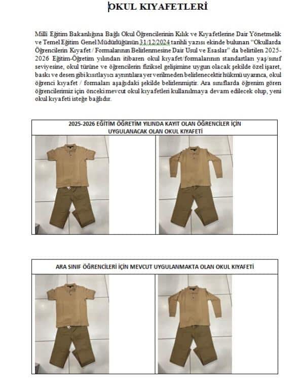 2025-2026 Eğitim Öğretim Yılında Kullanılacak Okul Formaları